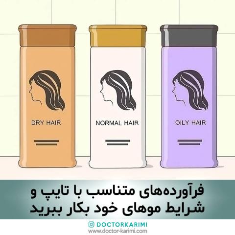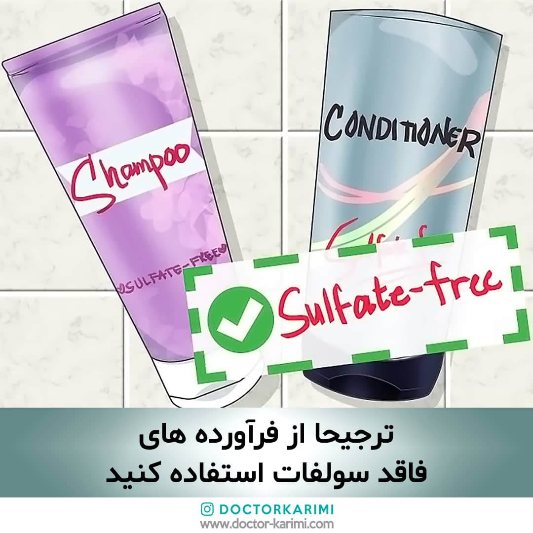 ۳. از شامپوی بدون سولفات مناسب با نوع پوست سر و پوست خود استفاده کنید (مثلا برای خشک کردن، چرب، آسیب دیده، کرات، ...)