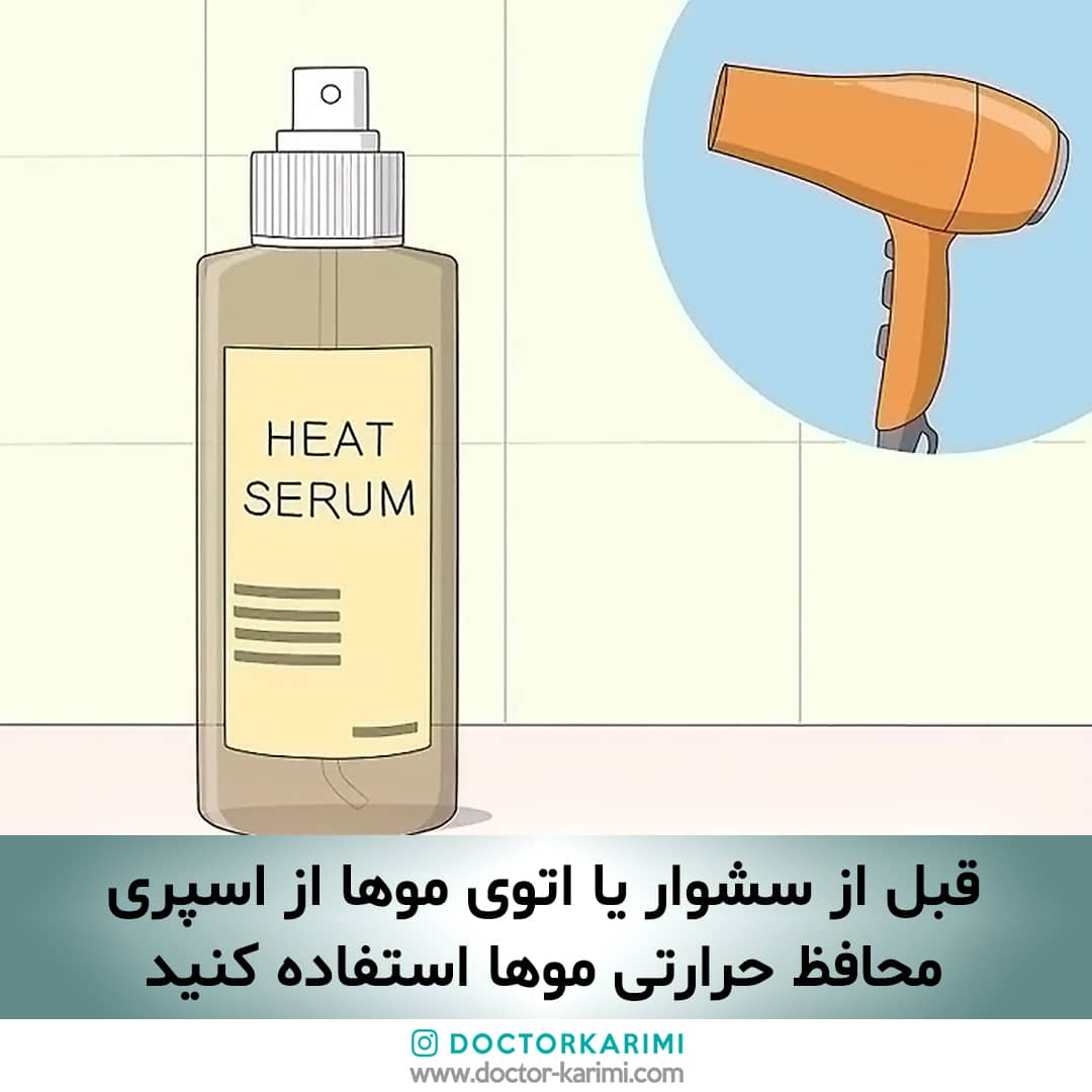 ● قبل از استفاده از سشوار یا اتوی مو حتما از اسپری و فرآورده های محافظ حرارتی موها (هنگامی که مو نمناک است) بر روی مو استفاده شود.