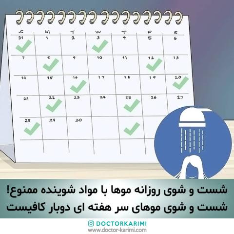 ۱. شست و شوی روزانه مو ممنوع است و در هفته ۲ بار و ۳ بار کافی است.